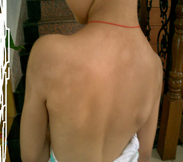 (3)白晕的边缘不象白癜风那样有色素加深的表现,中央的痣可以退色,看起来仅是一个淡红色小丘疹,最后变平甚至消失。其消失时间大约在数月到2~3年之间,随后白晕也渐渐消退。